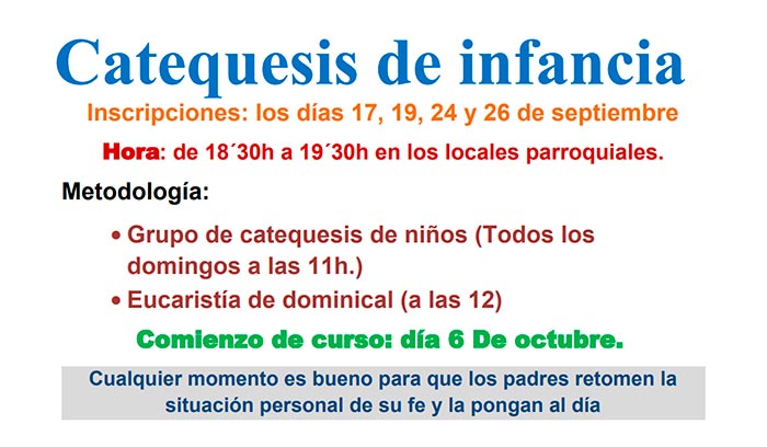 Hora: de 18´30h a 19´30h en los locales parroquiales.