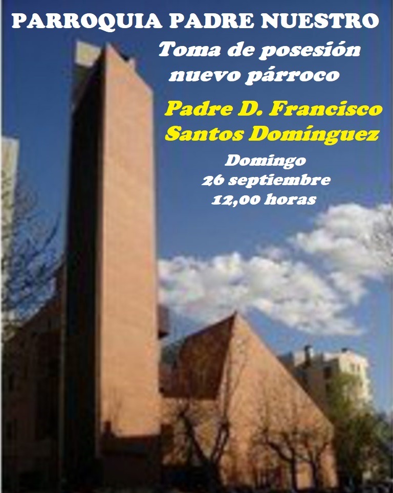 El próximo Domingo 26 de septiembre a las 12 horas, el padre don Francisco Santos Domínguez tomará posesión como nuevo párroco de la parroquia Padre Nuestro.