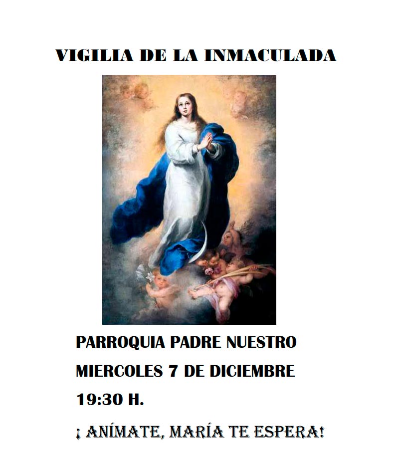Publicado el 4 diciembre, 2022 por goyixVigilia de la Inmaculada Miércoles 7 de diciembre a las 19:30 horas. ¡ ANÍMATE, MARÍA TE ESPERA! Comparte esto: Compartir en X (Se abre en una ventana nueva) X Comparte en Facebook (Se abre en una ventana nueva) Facebook Enviar por correo electrónico un enlace a un amigo (Se abre en una ventana nueva) Correo electrónico Relacionado