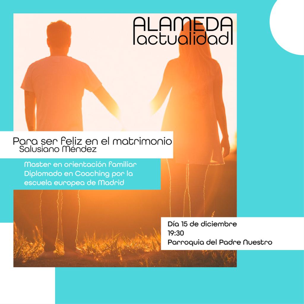 Con motivo del 50º aniversario de la Parroquia del Padre Nuestro, se van a realizar una serie de charlas sobre temas candentes de interés público. El ciclo de conferencias se llamará Alameda actualidad y comienza este Jueves 15 de diciembre a las 19:30 horas en los locales de la parroquia, con el tema Para ser feliz en el matrimonio, por Salustiano Méndez.