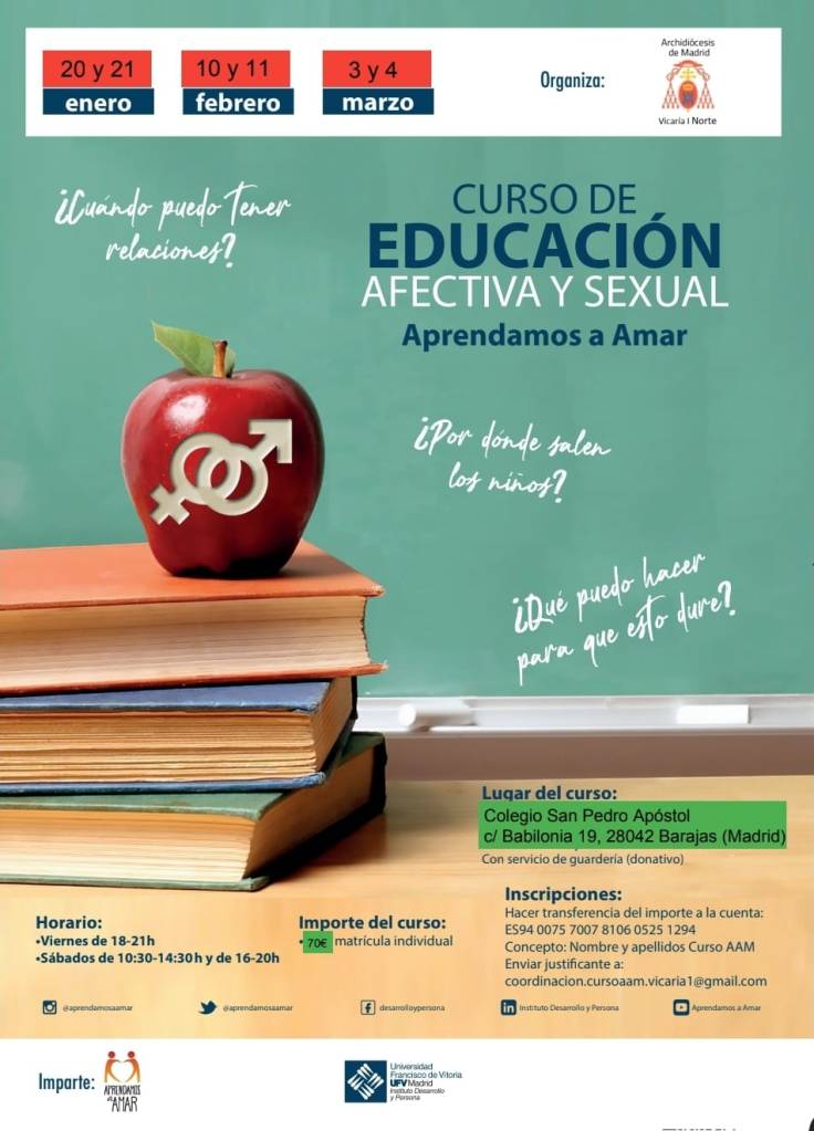 El Viernes 20 y el Sábado 21 de enero se realizará el «Curso de educación afectiva y sexual: aprendamos a amar» en el Colegio San Pedro Apóstol, calle Babilonia, 19.