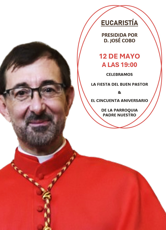 El próximo Domingo, 12 de Mayo, nuestra parroquia celebra la fiesta del Padre Nuestro y el 50º aniversario de existencia. Por ello la misa de las 19 horas será presidida por el cardenal y arzobispo de Madrid D. José Cobo Cano.
